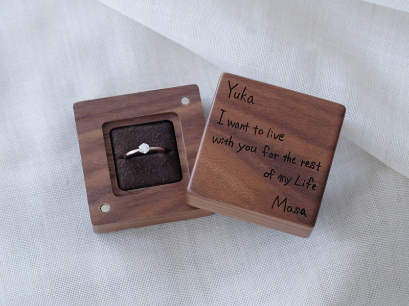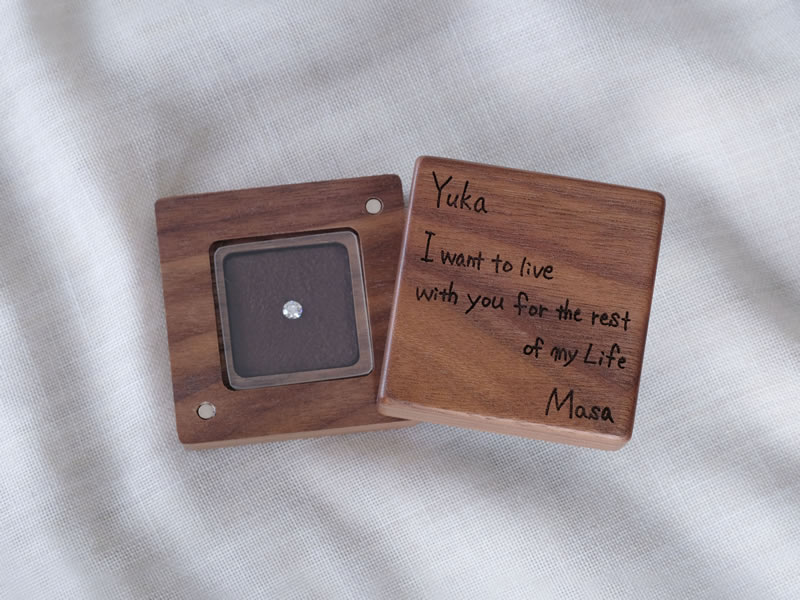 ルシェルではプロポーズの際に、オリジナル木製ケースにオリジナル彫刻が可能です。