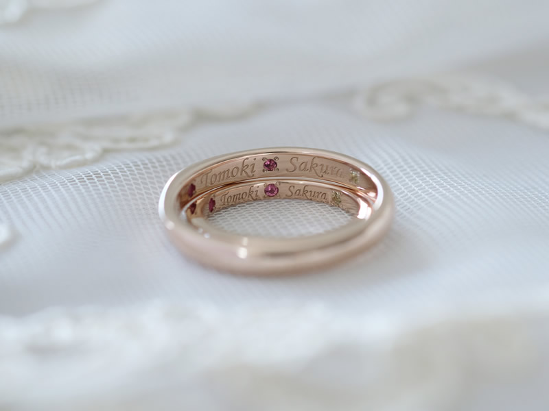 今回はおふたりともおそろいの「ピンクゴールド」にてお作りいただきました。