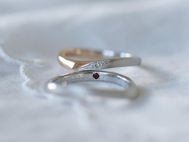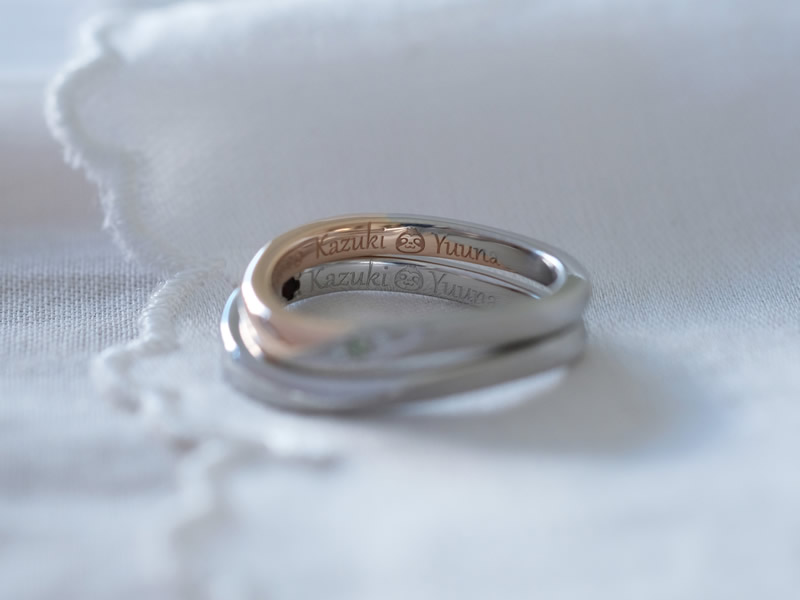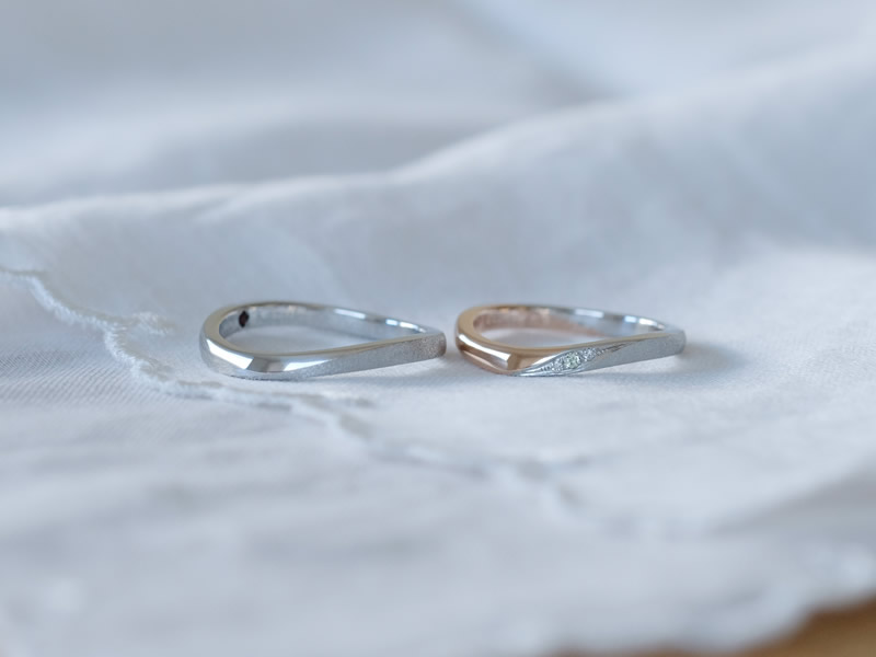 新郎様はプラチナ、新婦様はプラチナとピンクゴールドの組み合わせです。
