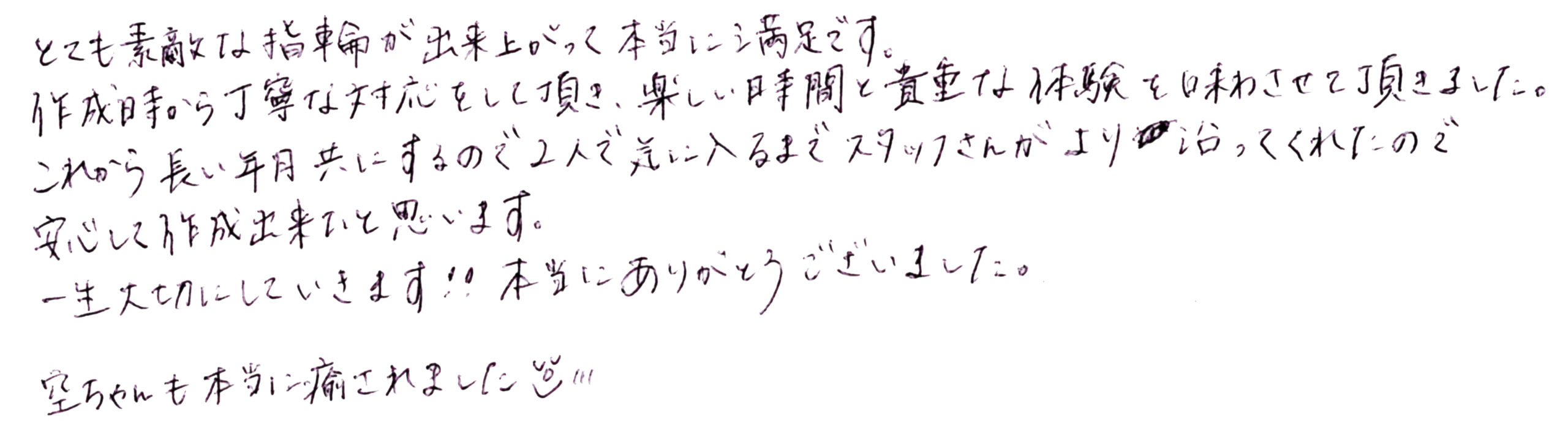 一生大切にしていきます!!本当にありがとうございました。
