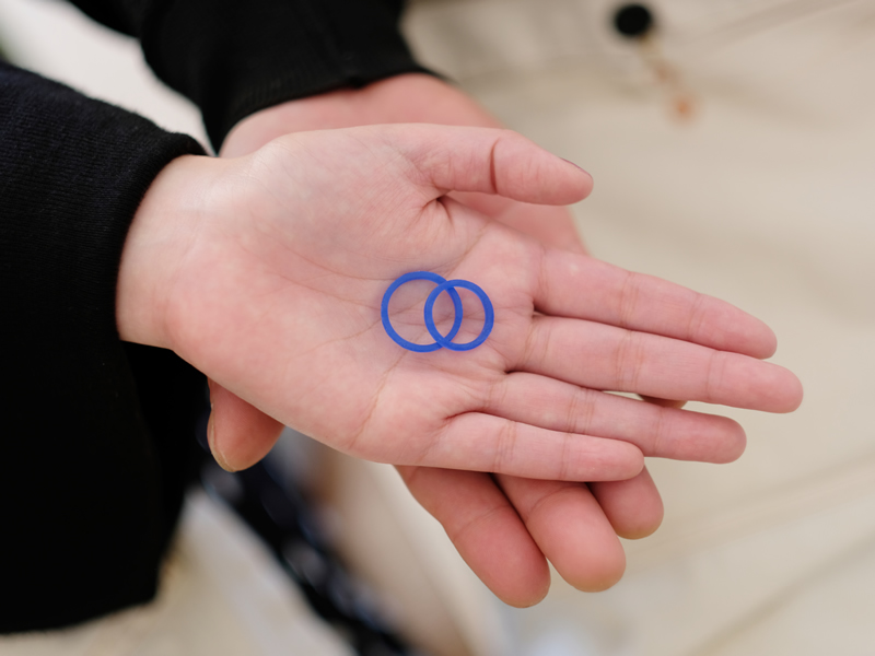 オーダーの婚約指輪と手作り結婚指輪、2本を重ねて着けたときも一体感のある仕上がりで、オーダーと手作りそれぞれの良さが引き立ちました。