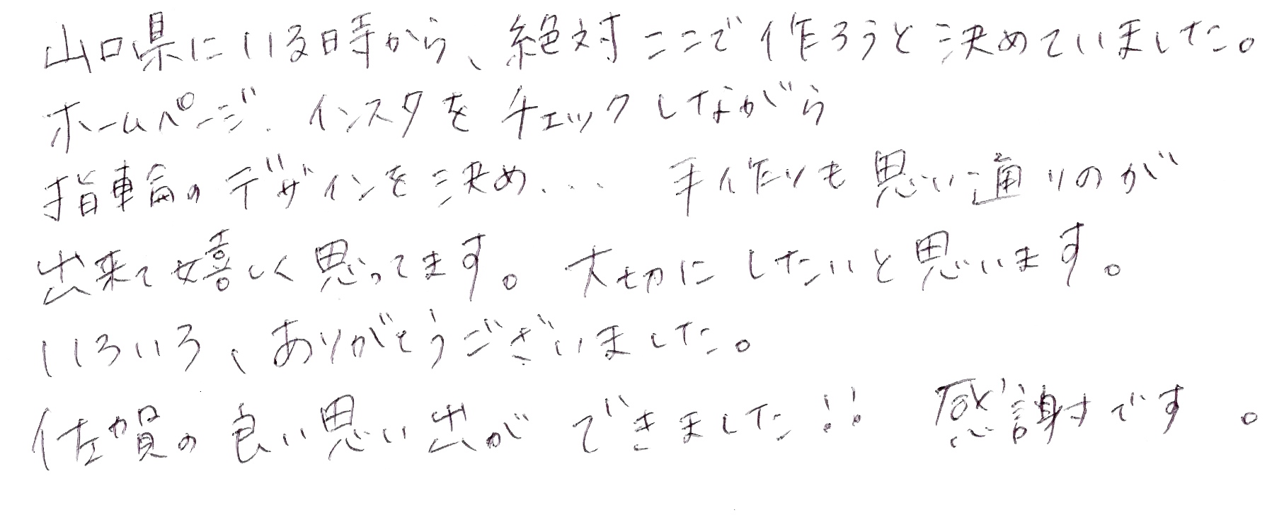 ホームページ、インスタをチェックしながら指輪のデザインを決め…手作りも思い通りのが出来て嬉しく思っています。