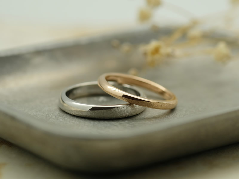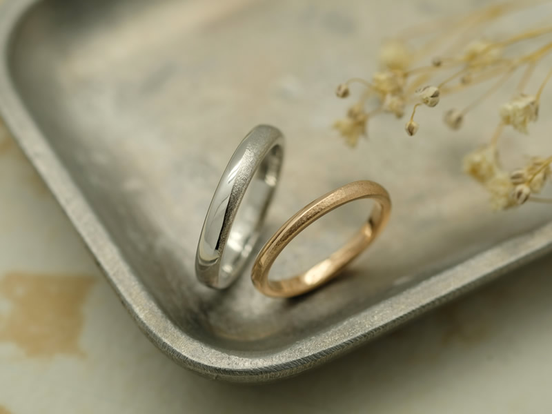 普段ほとんど指輪をすることがないお二人でしたが、様々なサンプルリングや制作事例を見ていく中で少しずつデザインが固まっていきました。