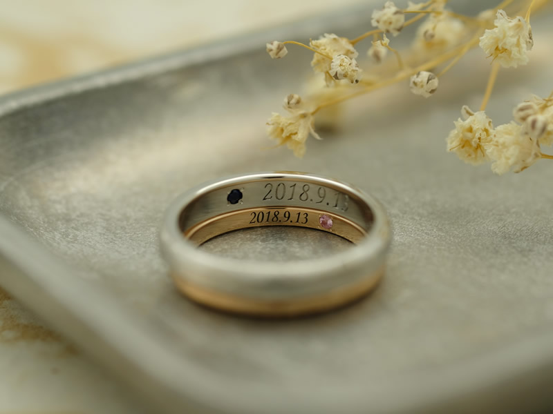 - 男性:ブルーサファイア(内側) 女性:ピンクサファイア(内側)
