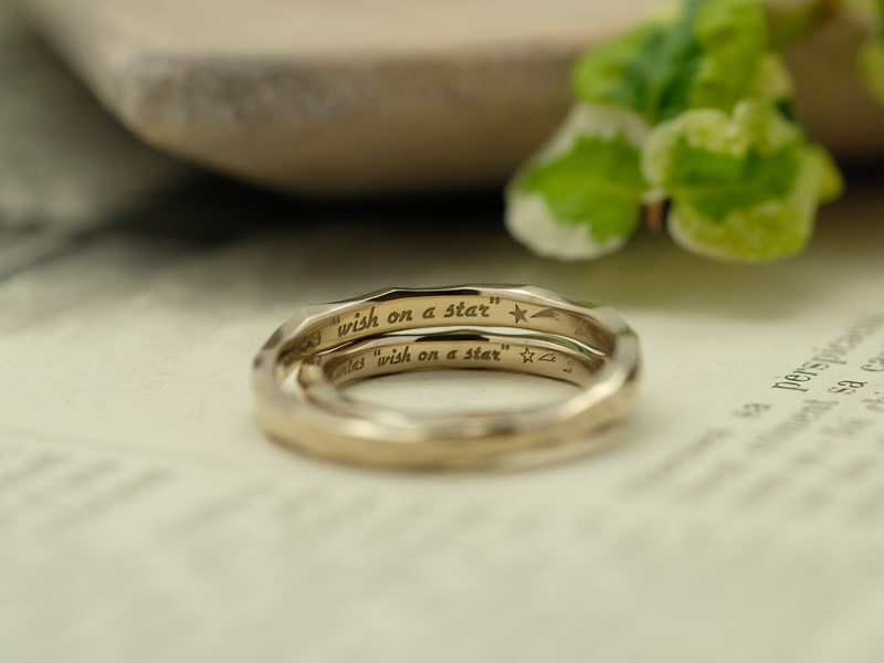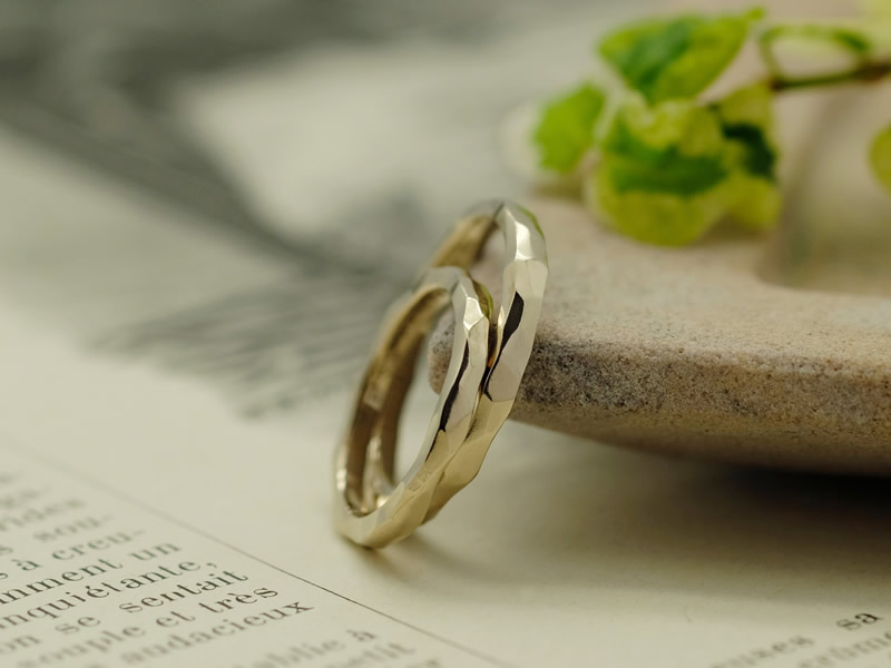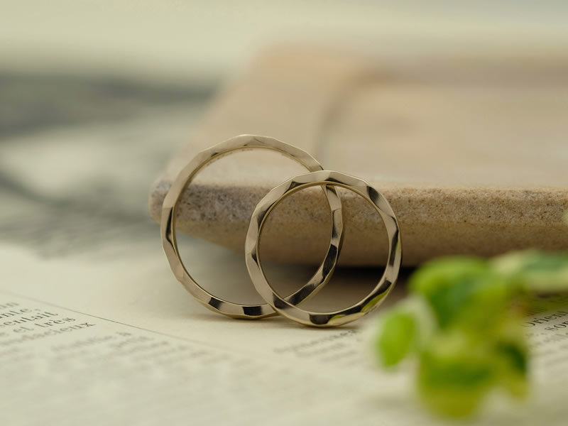 重ね付けしたときのバランスや鎚目仕上げのセット感を大切にしながら試着の際に着用感や内側の文字を調整していきました。