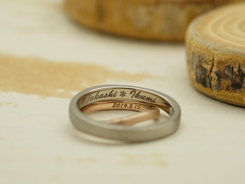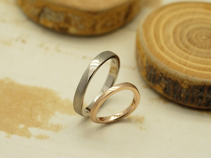色やフォルムは違っていても共通する部分を取り入れることでオーダーメイドらしく、二人らしいオリジナリティのある結婚指輪が完成いたしました。