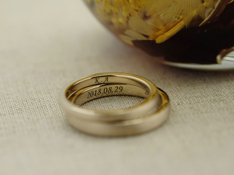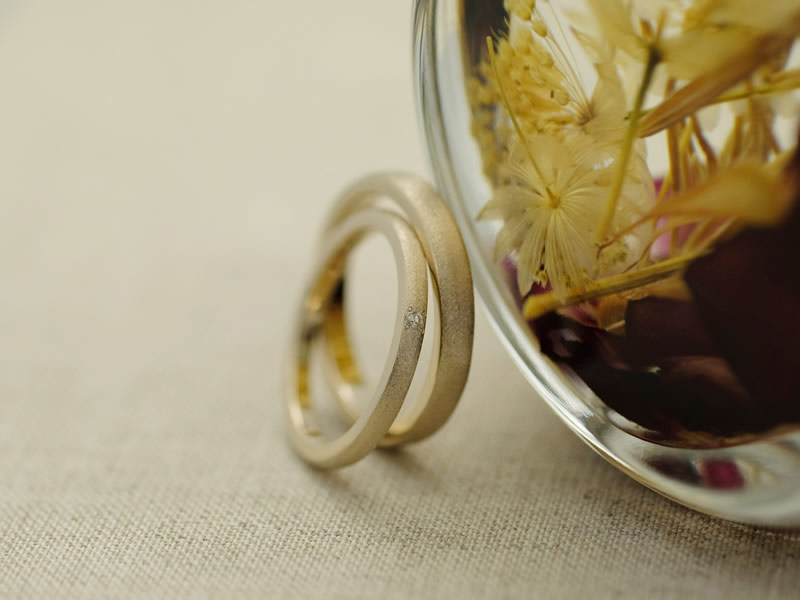 シンプルなデザインの中でも誕生石の位置や仕上げ等、お二人の指にしっくり馴染むような優しい雰囲気の指輪が完成いたしました。