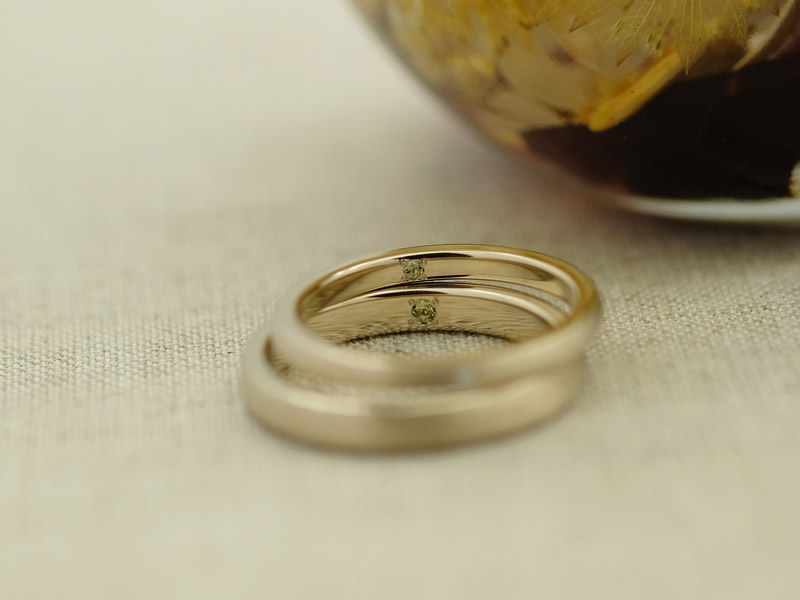 男性:ペリドット(内側) 女性:ダイヤモンド(外側)・ペリドット(内側)