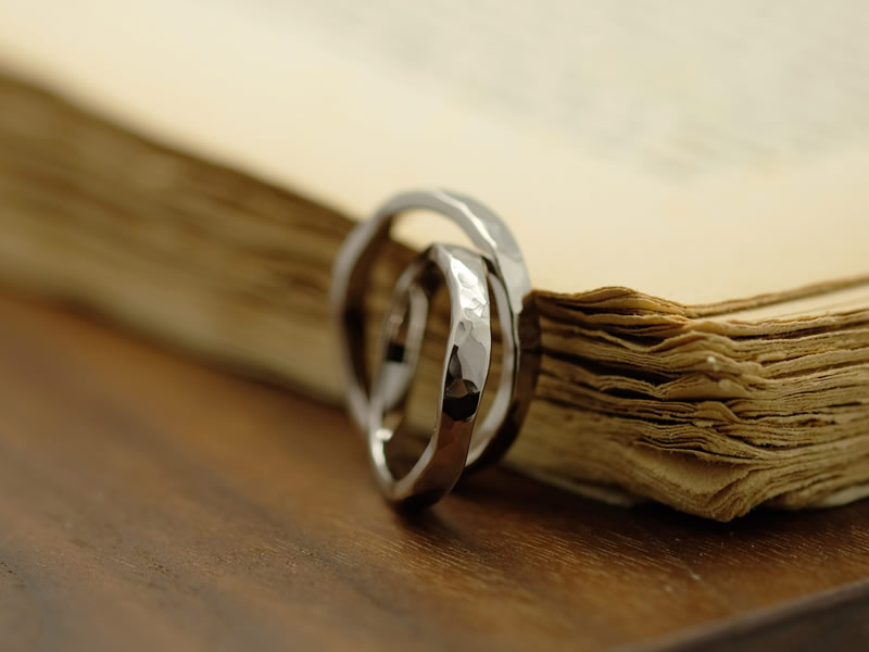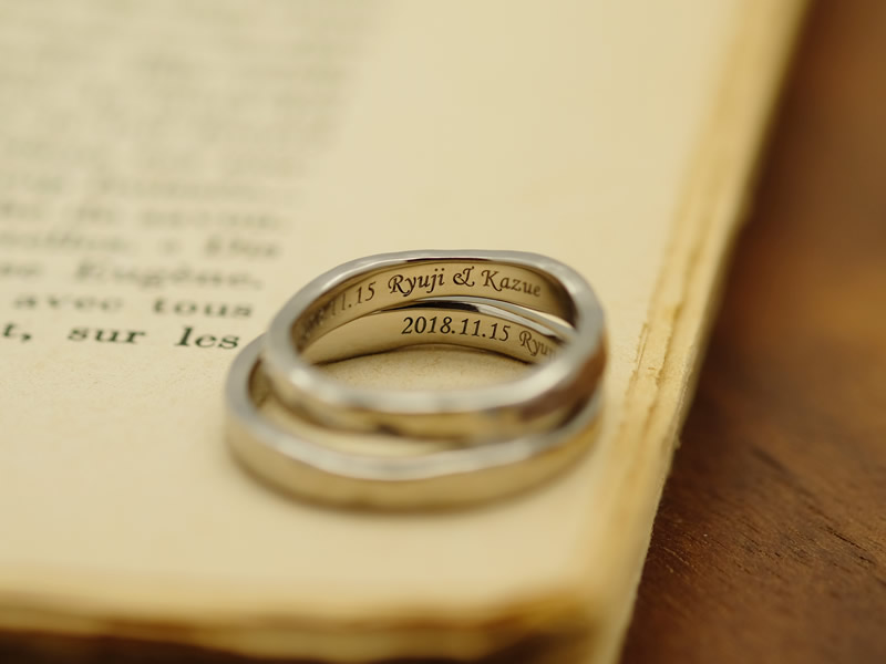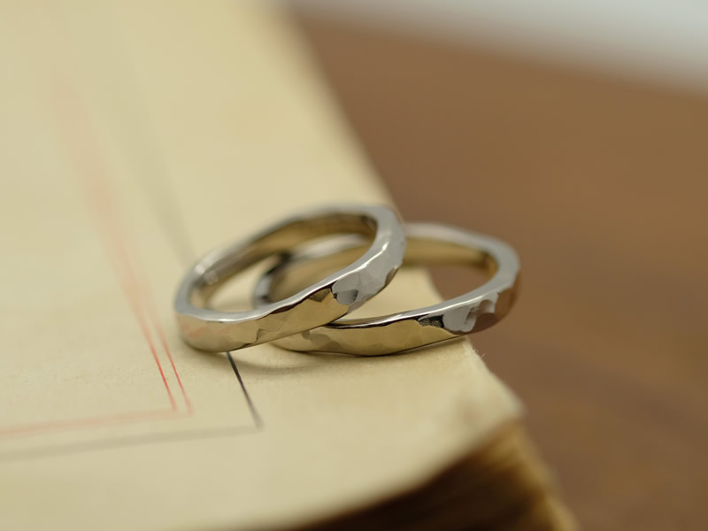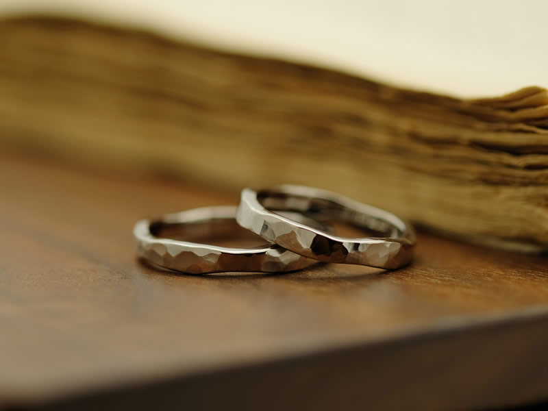 ジュエリーショップを何軒も回られた中で、職人の手作り感が直に感じられる当店の鎚目のマリッジリングを気に入ってくださいました。