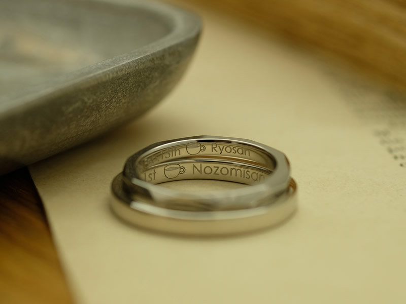 自分にとって本当に馴染むシンプルな結婚指輪とはどんな形なのかをじっくり探求しながら、打ち合わせを進めさせていただきました。