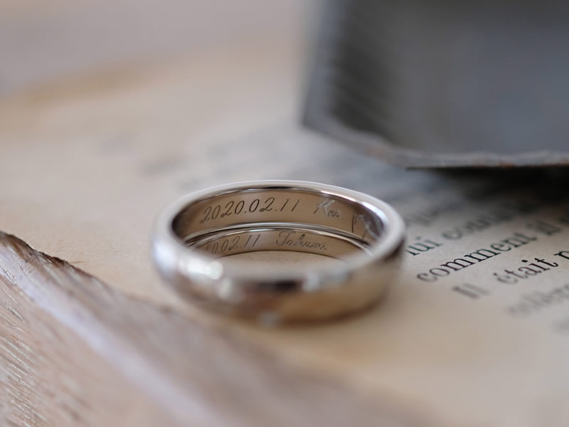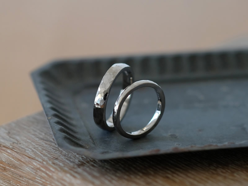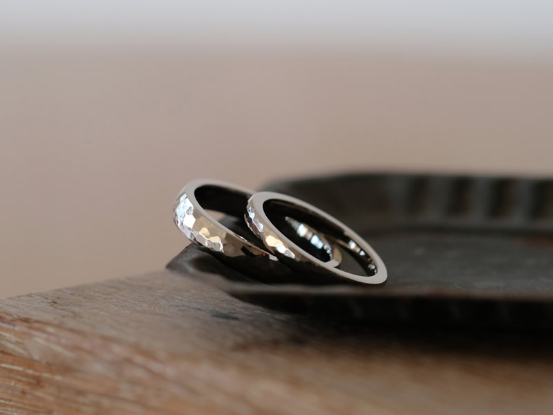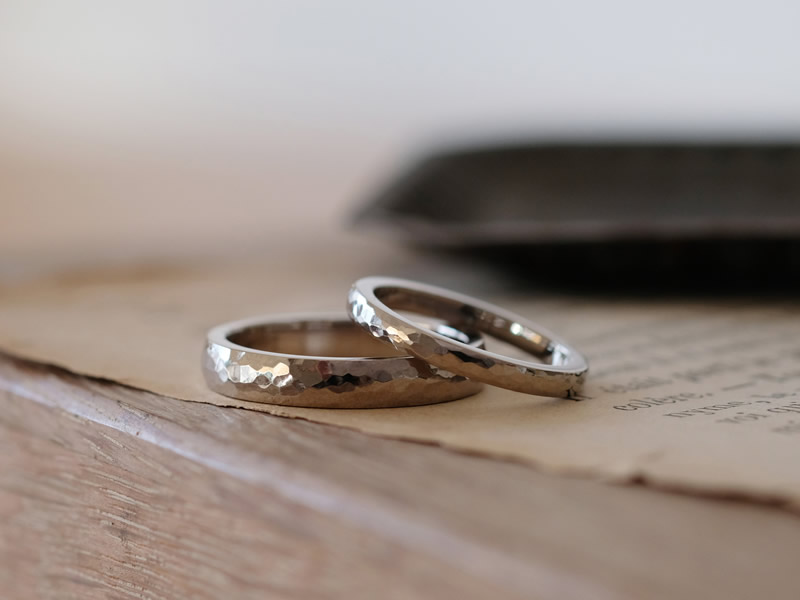 職人が丁寧に金鎚で叩いて仕上げたオーダーメイドの結婚指輪です。