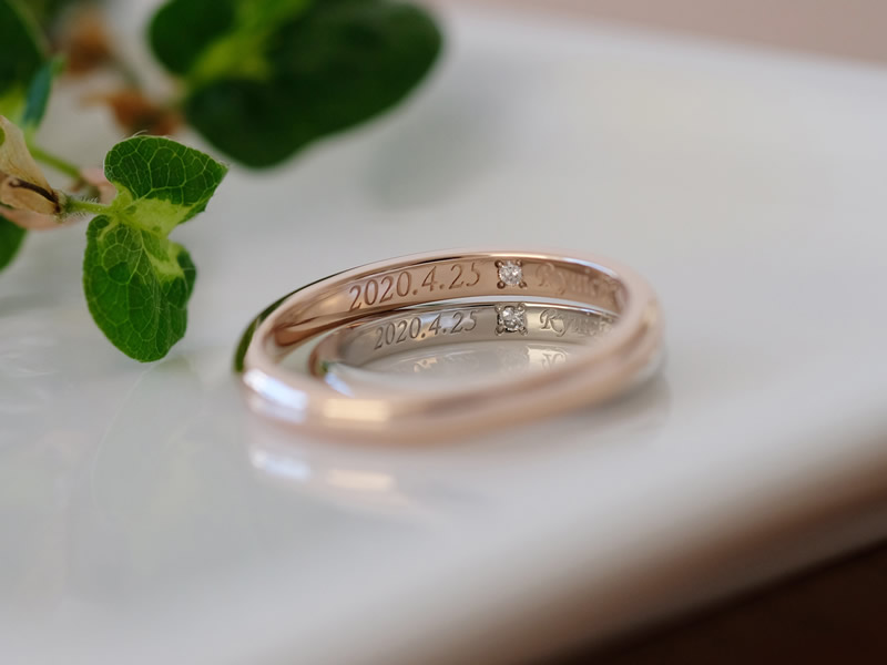 内側には4月のご入籍記念日の石であるダイヤモンドを留めました。
