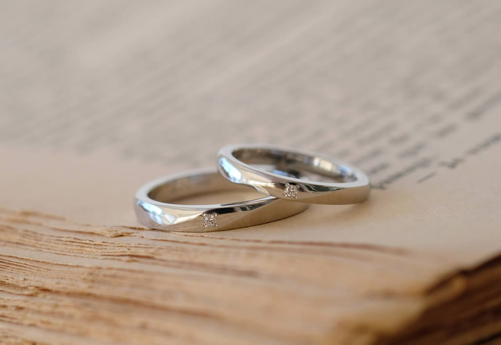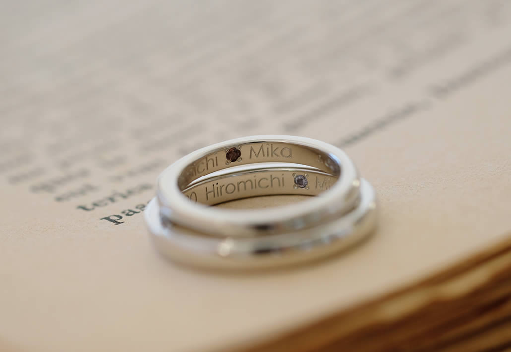 お揃いのデザインで手作りしていただいた結婚指輪です。
