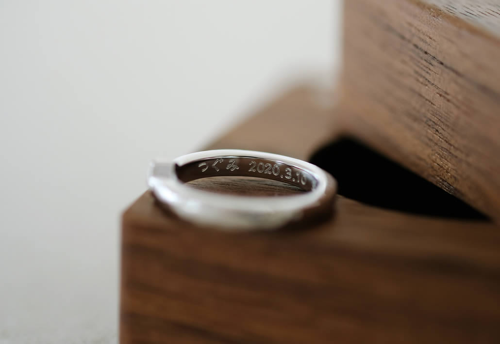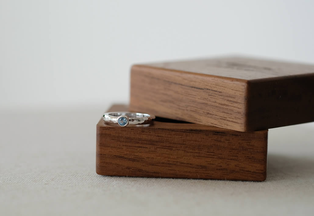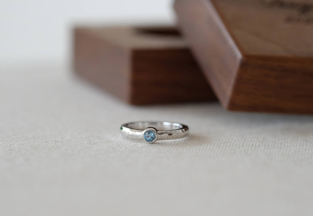 リング全体に鎚目加工を入れることで、キラキラと輝くリングに温かみが生まれました。