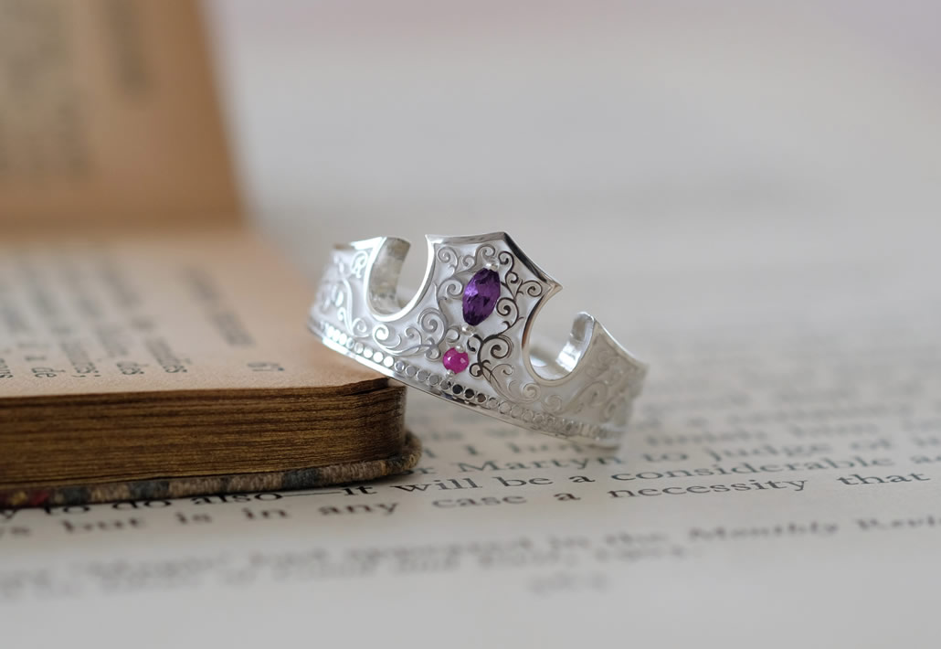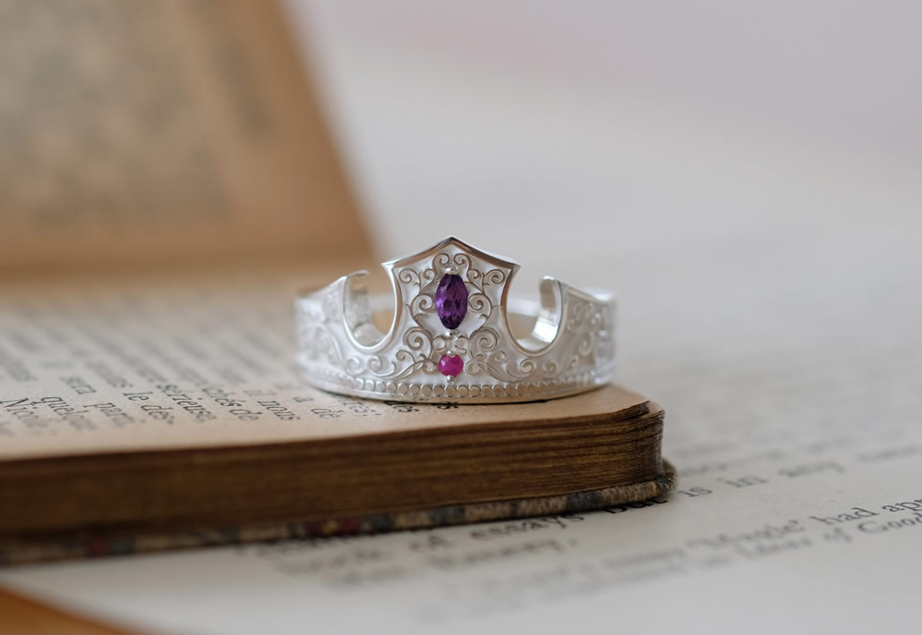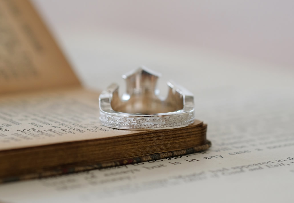 以前ご婚約指輪として「オーロラ姫」のティアラをモチーフに作らせていただいたオーダーリングとお揃いのメンズリングです。
