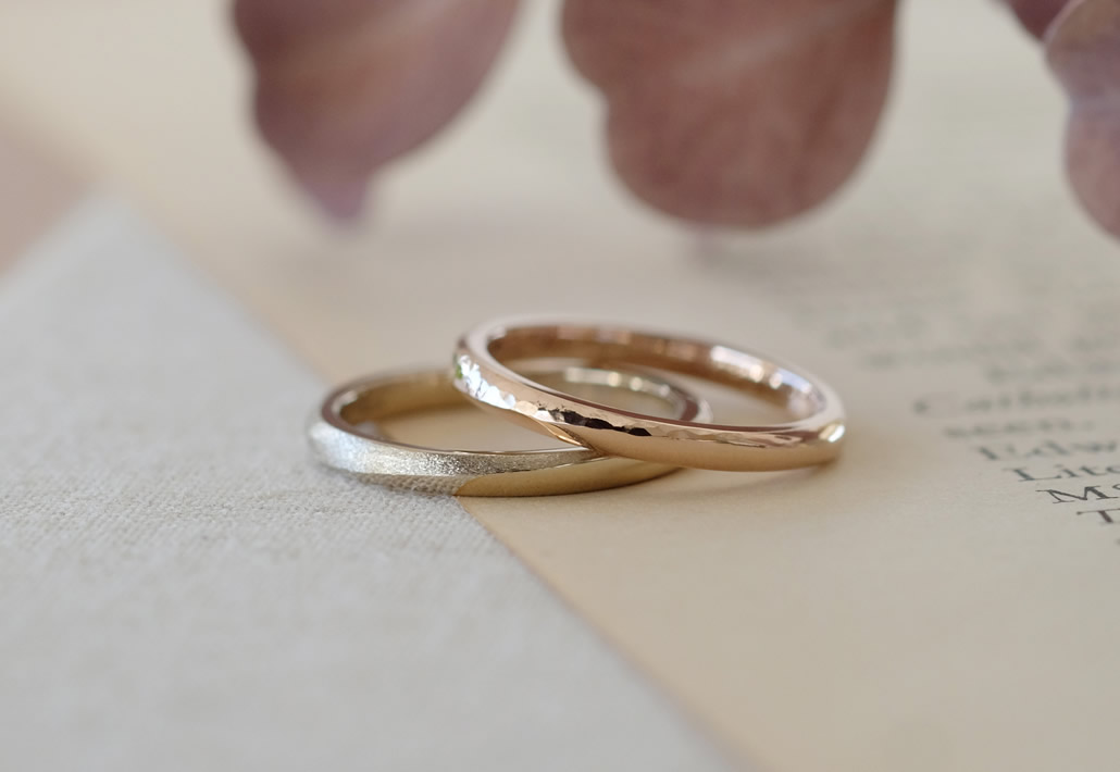 それぞれの指輪にはお二人の好きが反映された手作り結婚指輪です。