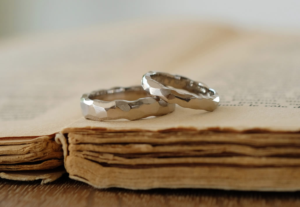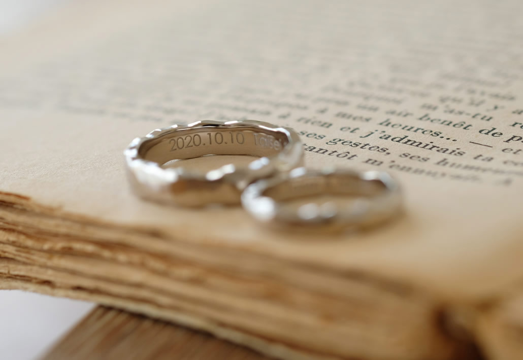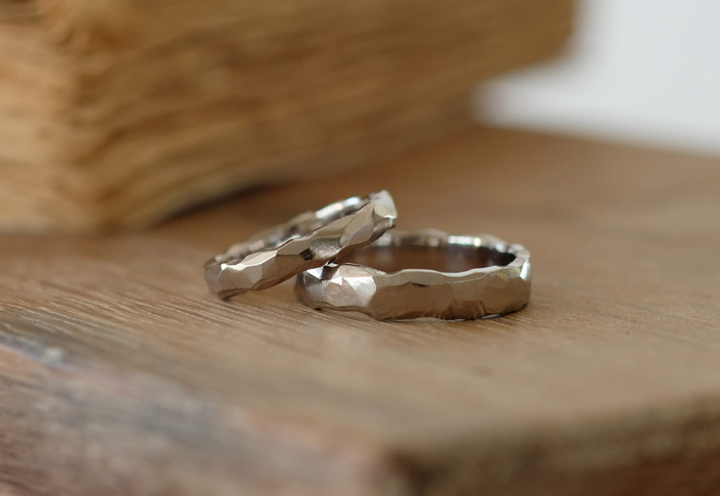 普段からアクセサリーをよく身につけるというお二人は、結婚指輪も存在感のあるデザインを希望されました。