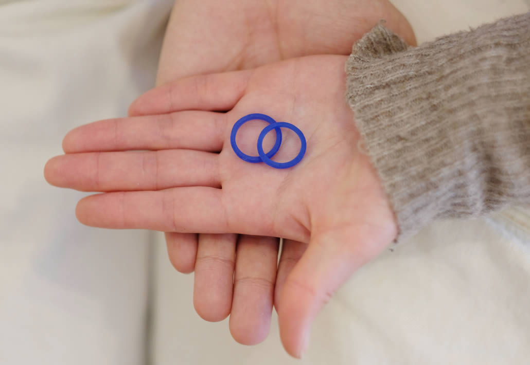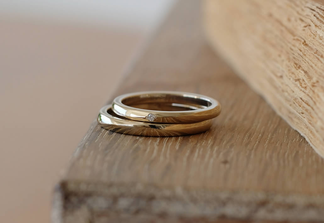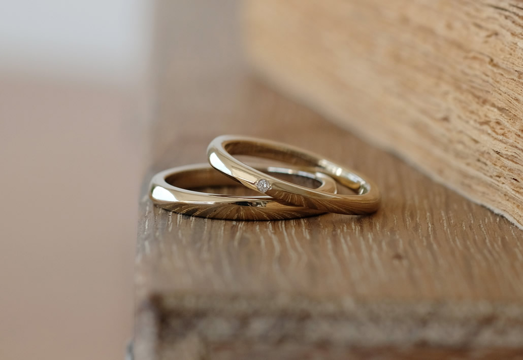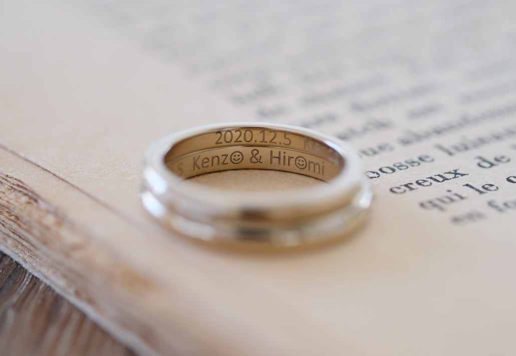 リング内側には、お二人のお名前に共通する「O」をスマイルマークを入れ遊び心を大切にした結婚指輪となりました。