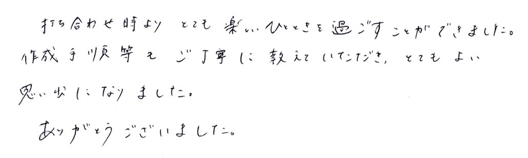 作成手順等もご丁寧に教えていただき、とてもよい思い出になりました。