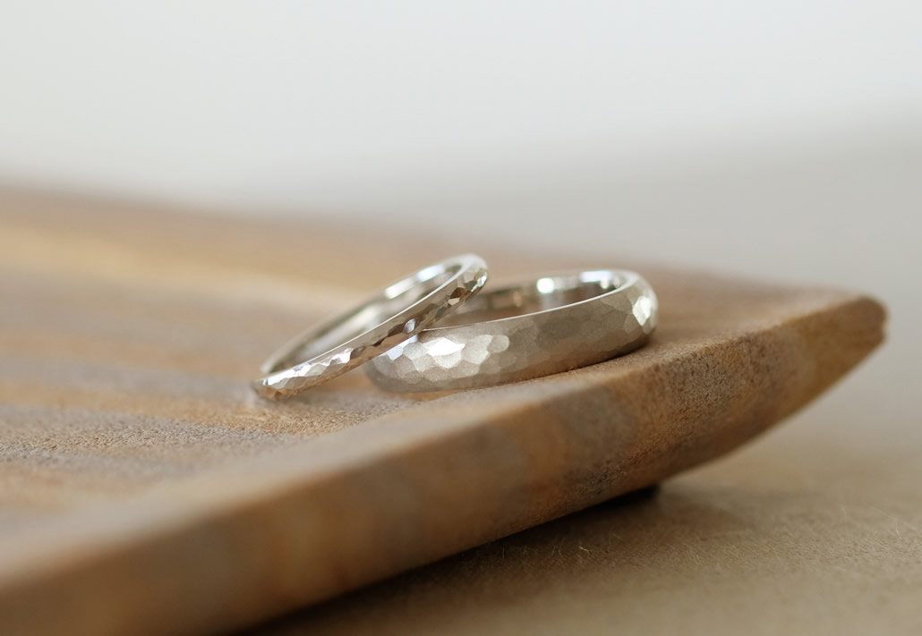 同じプラチナであっても、リング幅やつや消し・鏡面の表面加工で印象が変わるのがオーダーメイドならではです。