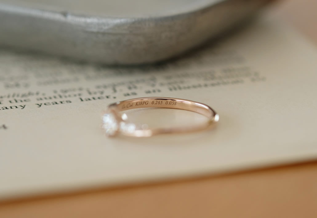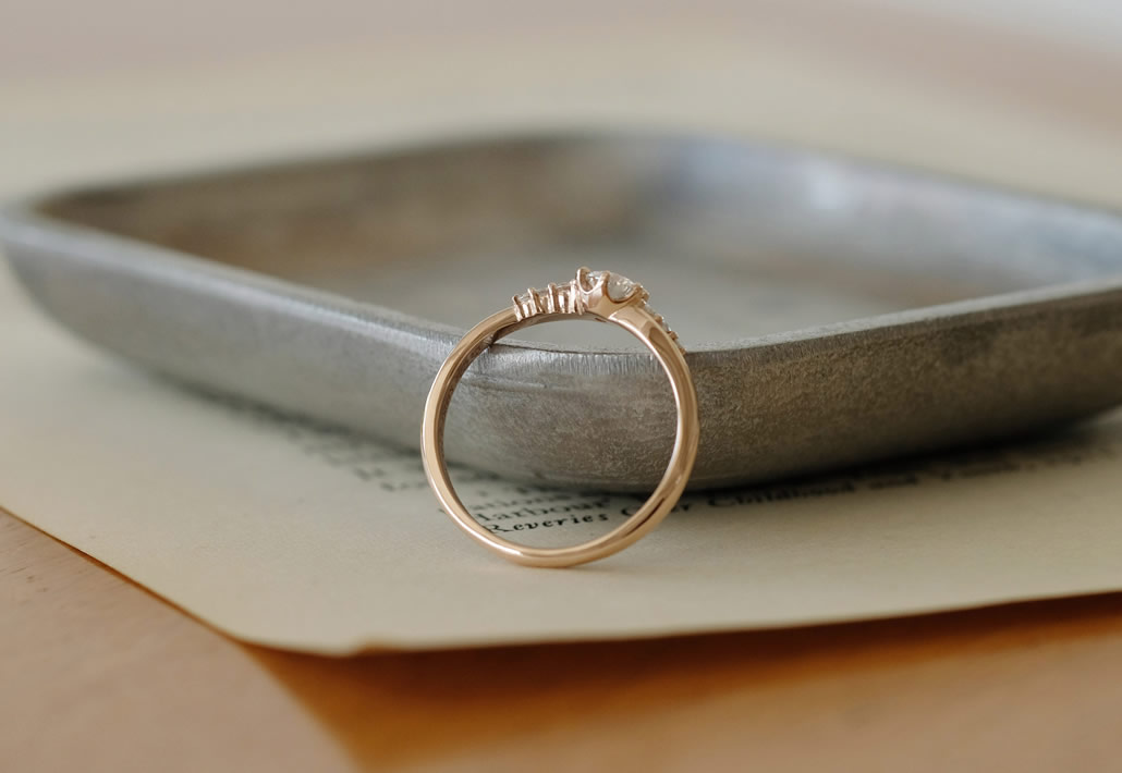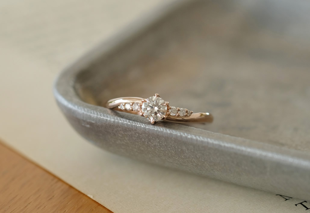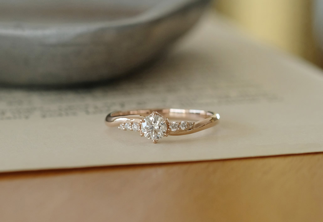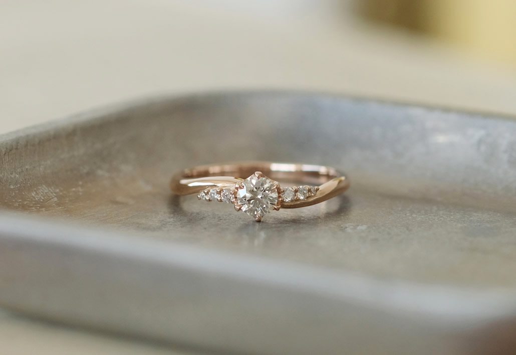 素材のピンクゴールドと相まって、女性らしく上品な婚約指輪が出来上がりました。