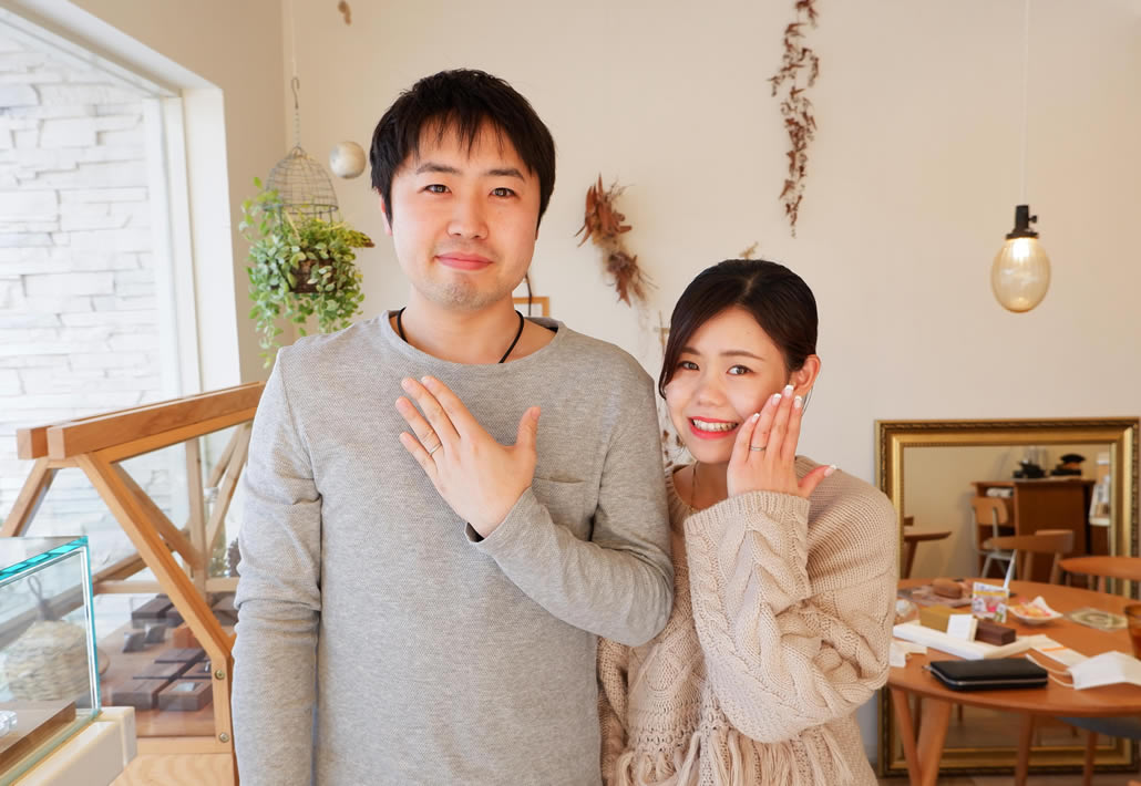 素材、仕上げともにお揃いのお二人。