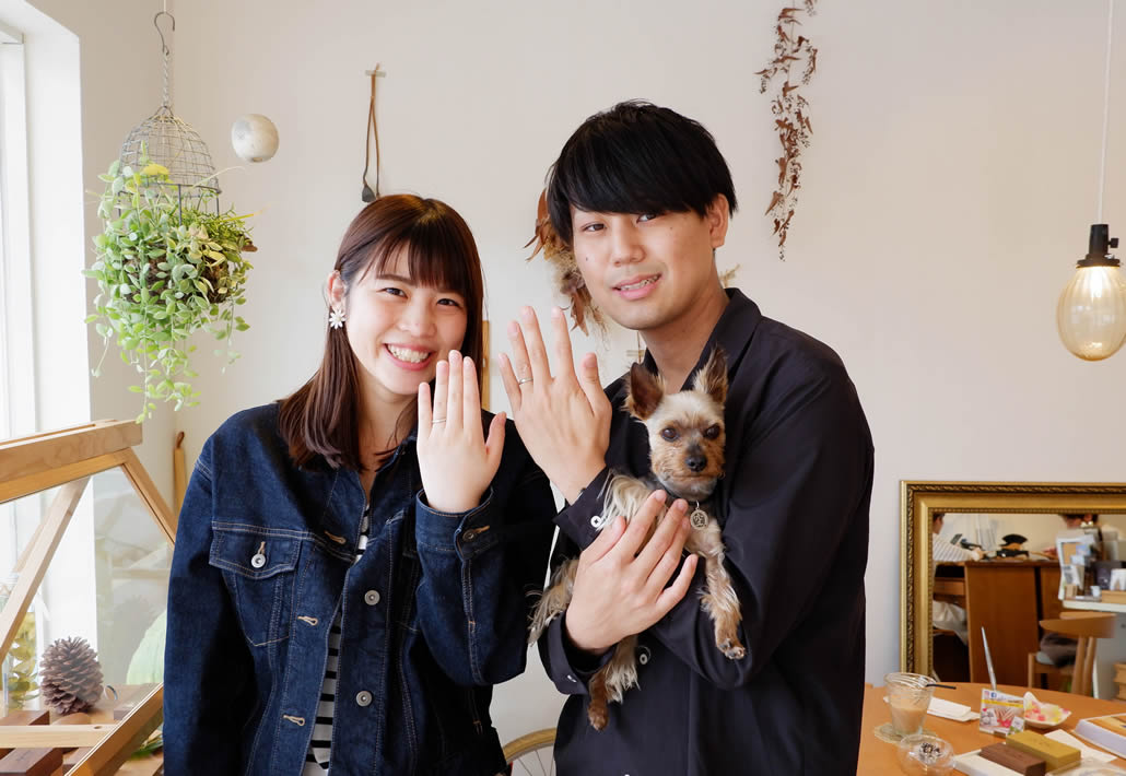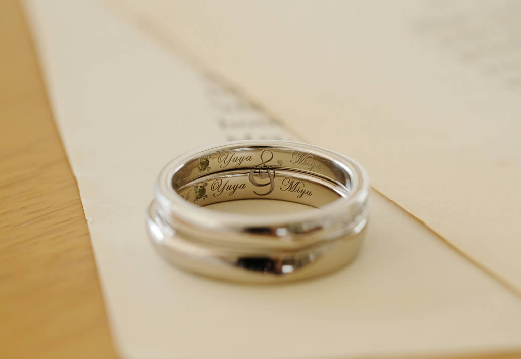 外側と内側からお二人の仲の良さが伝わってくる結婚指輪となりました。
