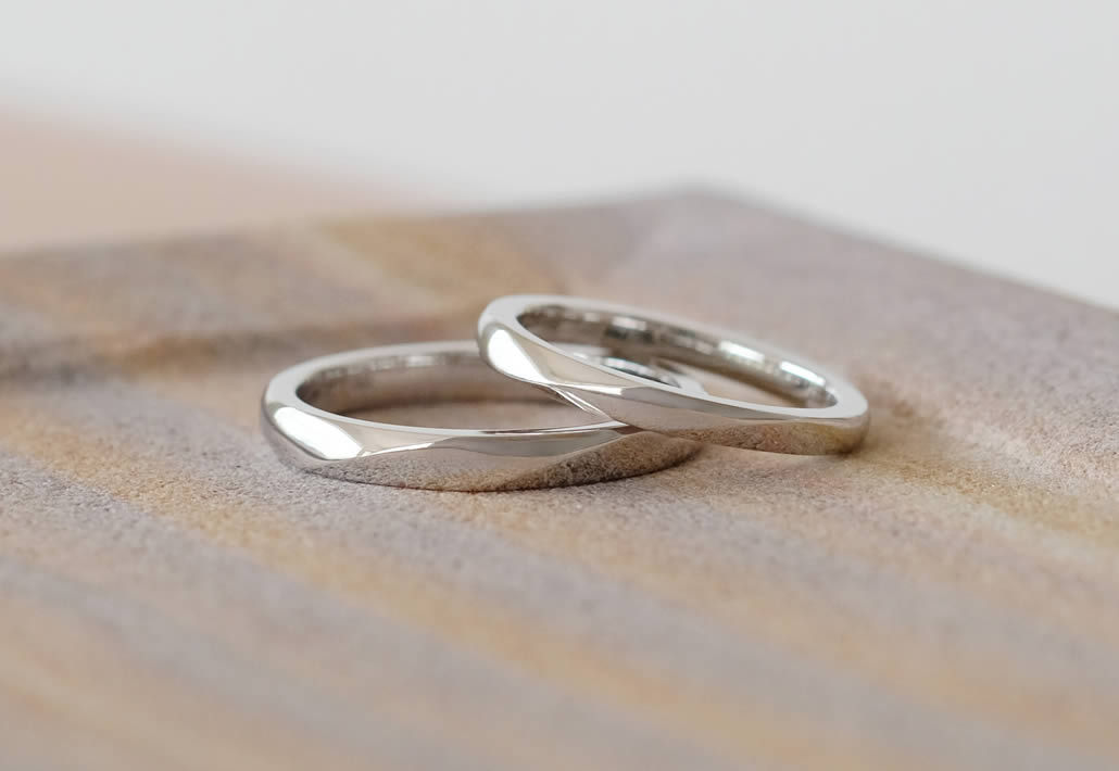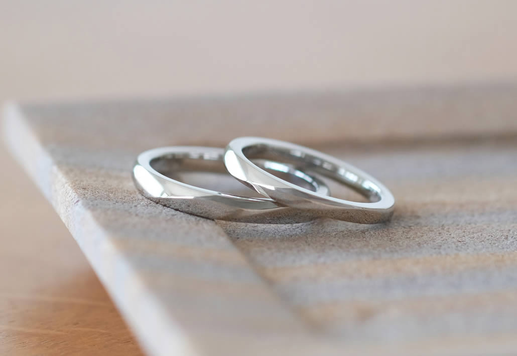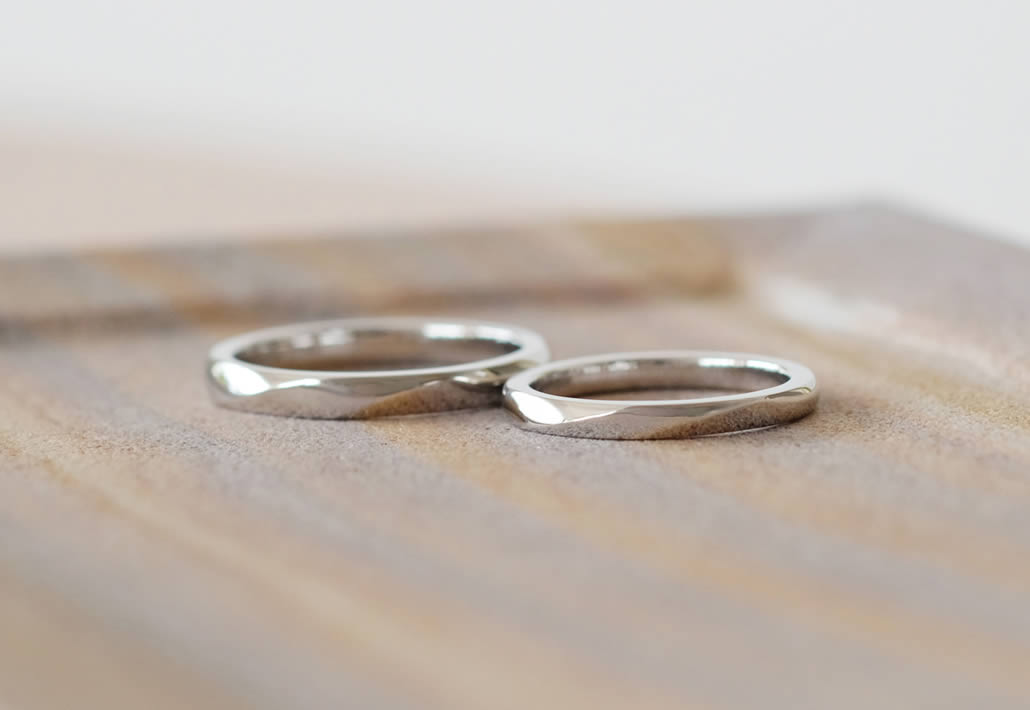 金属アレルギーをお持ちの女性のご要望で、アレルギー反応がより少ない純プラチナ(Pt1000)でお作りした結婚指輪です。