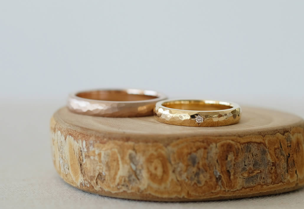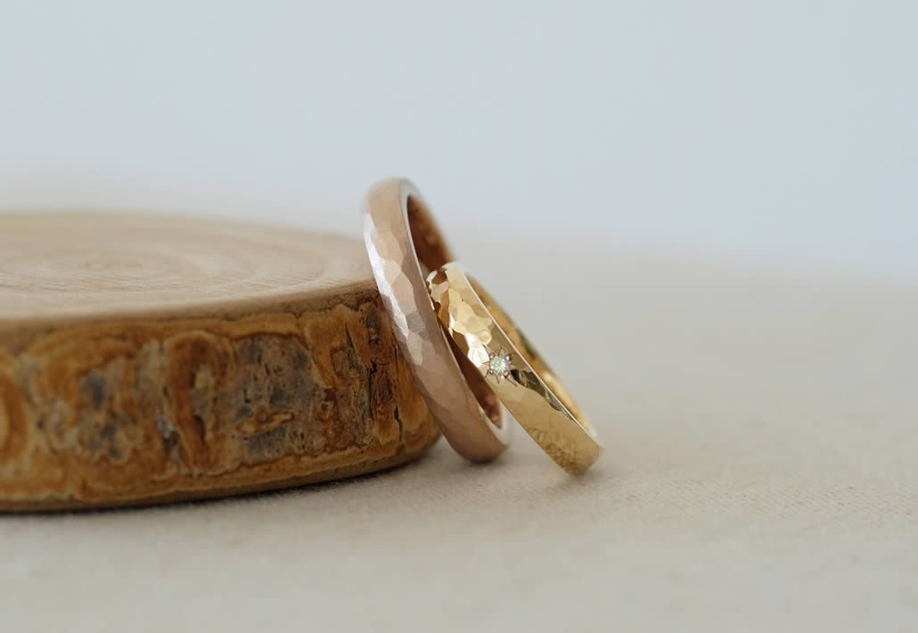 実際にサンプルを着けてみて、お揃いの鎚目仕上がりとなりました。