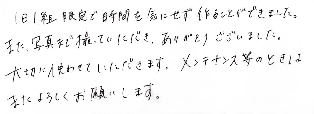 1日1組限定で時間を気にせず作ることができました。