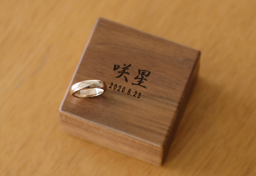 今回は女の子の赤ちゃんへの指輪ということで、可愛らしいピンクゴールドの色合いと丸みをつけて輝きをもたせたシンプルなデザインに。