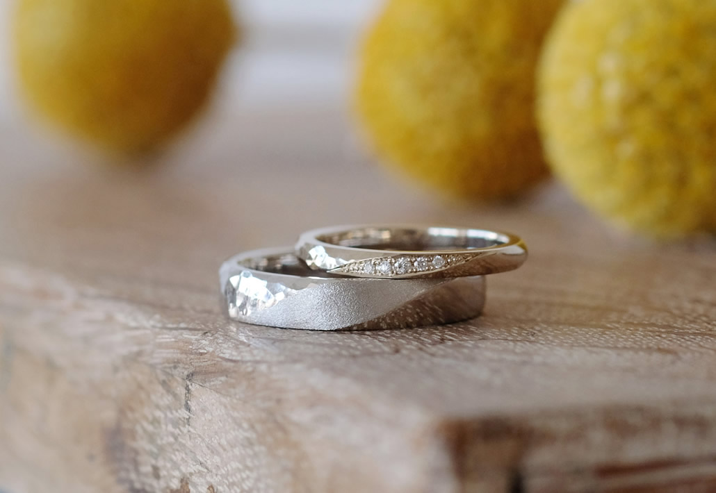 それぞれに立体感を入れることでお揃いの仕上げがペア感を大事にしております。