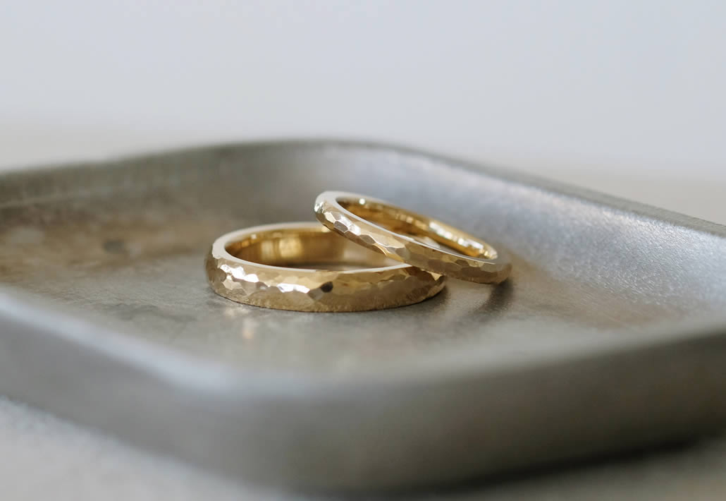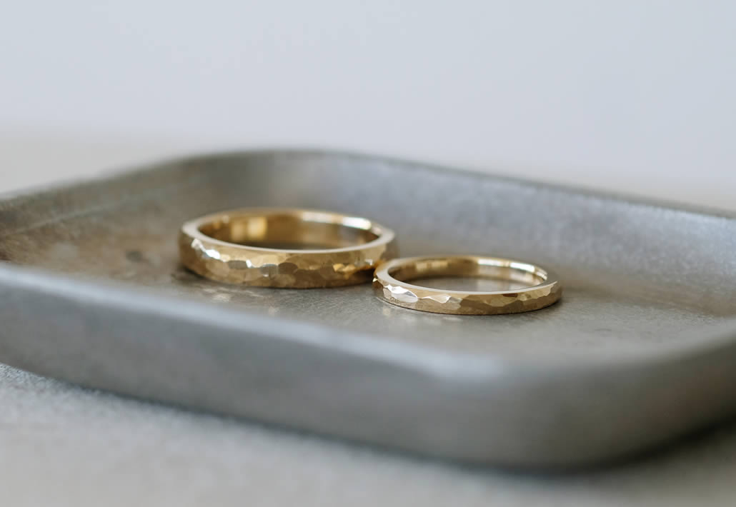初めてのご来店でお打ち合わせ~手作り作業までを行っていただきましたがおふたりの好みが近くお揃いのデザインでスムーズに決まり、おふたりのペースで指輪作りを楽しんでくださいました。