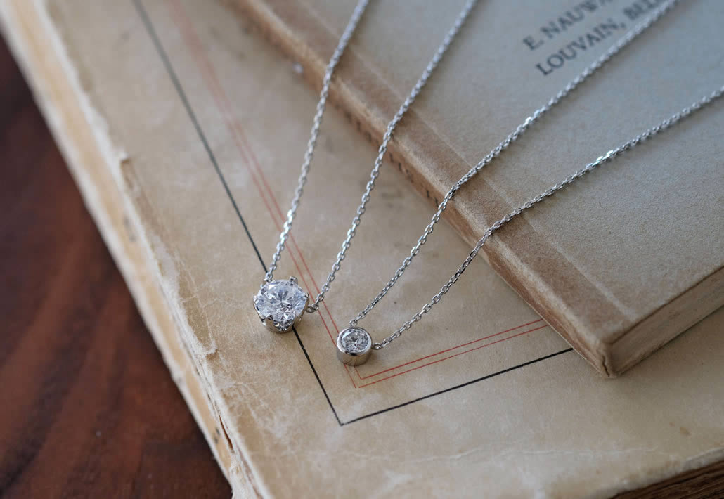 着用時に留金具が回ってこないチェーン一体型のネックレスは、トップが軽くて回りやすいシンプルなデザインには特におすすめの構造です。