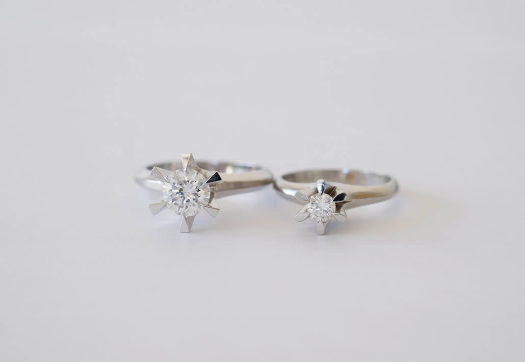 ダイヤのサイズに合わせて石留方法を変えて、使い分けができるようにしております。