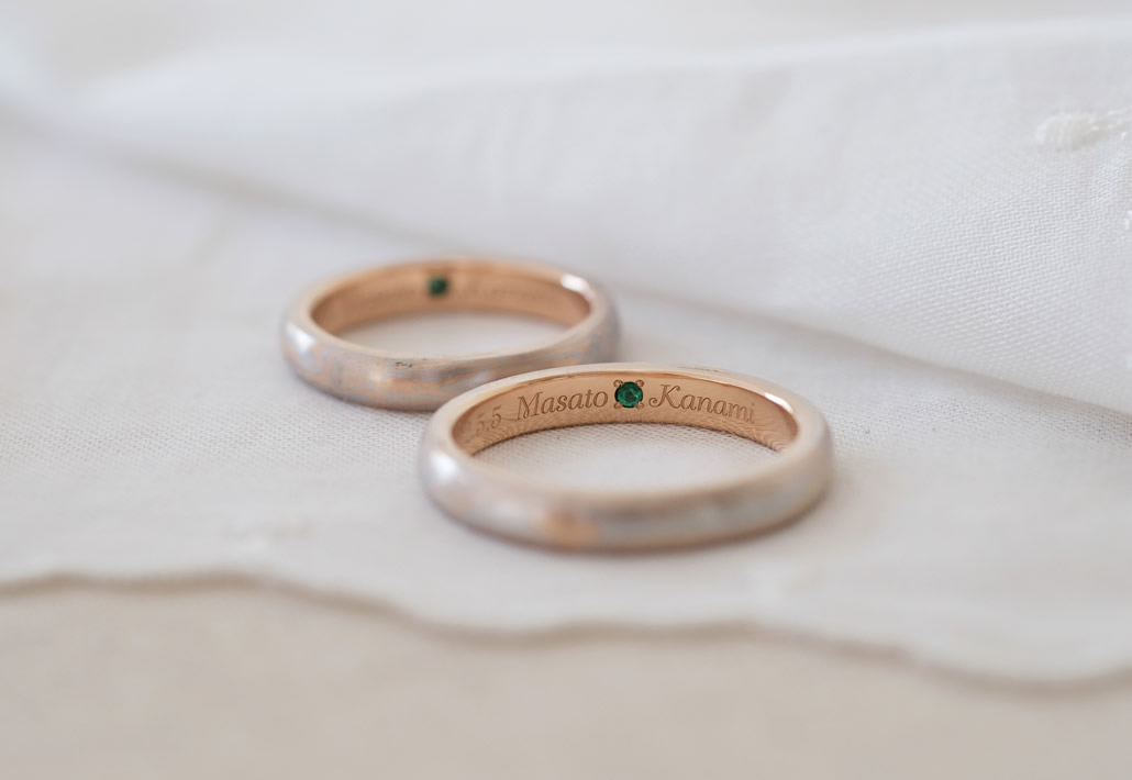 お二人のこだわりを反映したオリジナリティ溢れるマリッジリングとなりました。