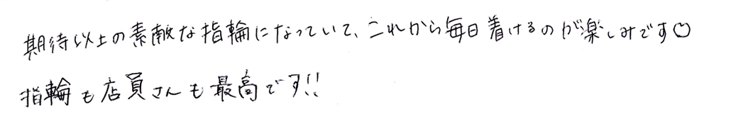 期待以上の素敵な指輪になっていて、これからも毎日着けるのが楽しみです。