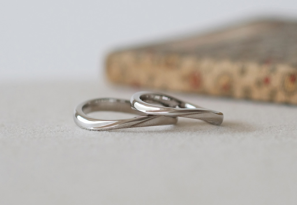 たくさんのサンプルリングの中から、ウェーブのフォルム正面にねじりの立体感がついたデザインを気に入ってくださいました。