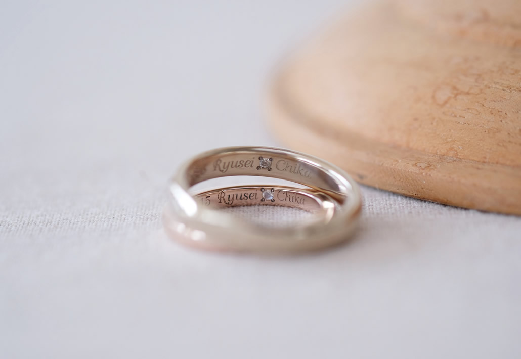 新婦さまが妊娠中ということでしたが、せっかくなら記念に残る指輪にしたいとのご希望で、おふたりでの手作りをお選びくださいました。