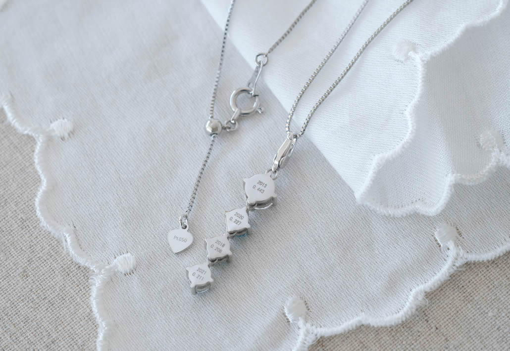 昨年ピアスを2組お作りした際に残っていたダイヤモンドを全て使用し、ネックレスを2本制作させていただきました。