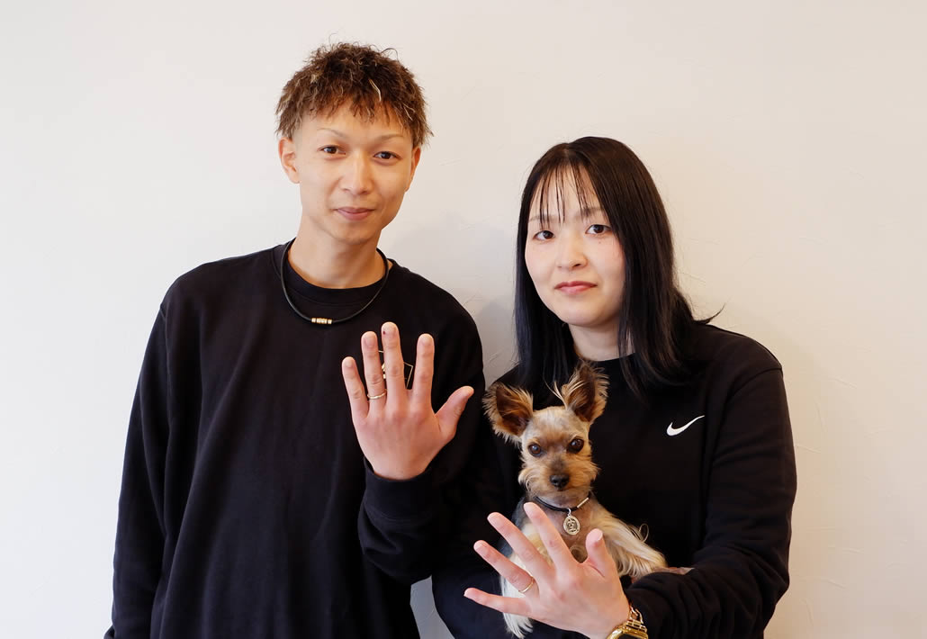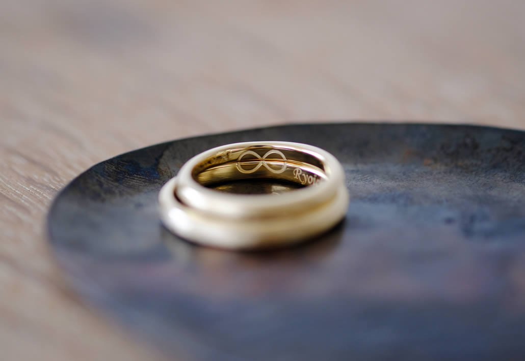 内側には、おふたりの指輪を重ねたときに繋がる「無限大マーク」を彫刻し、強い絆を感じさせる特別なリングに仕上がりました。
