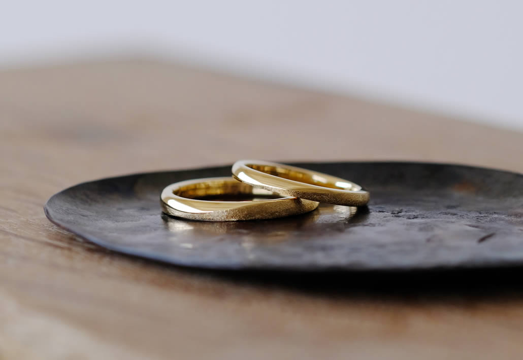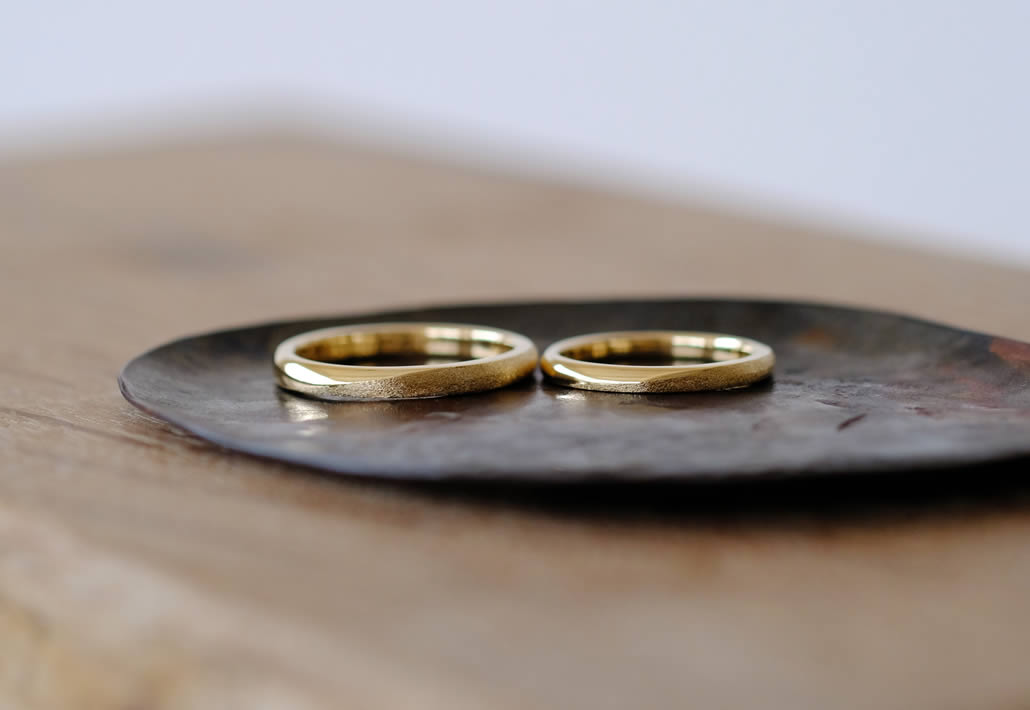 イエローゴールドの鮮やかな色合いが美しい手作り結婚指輪です。