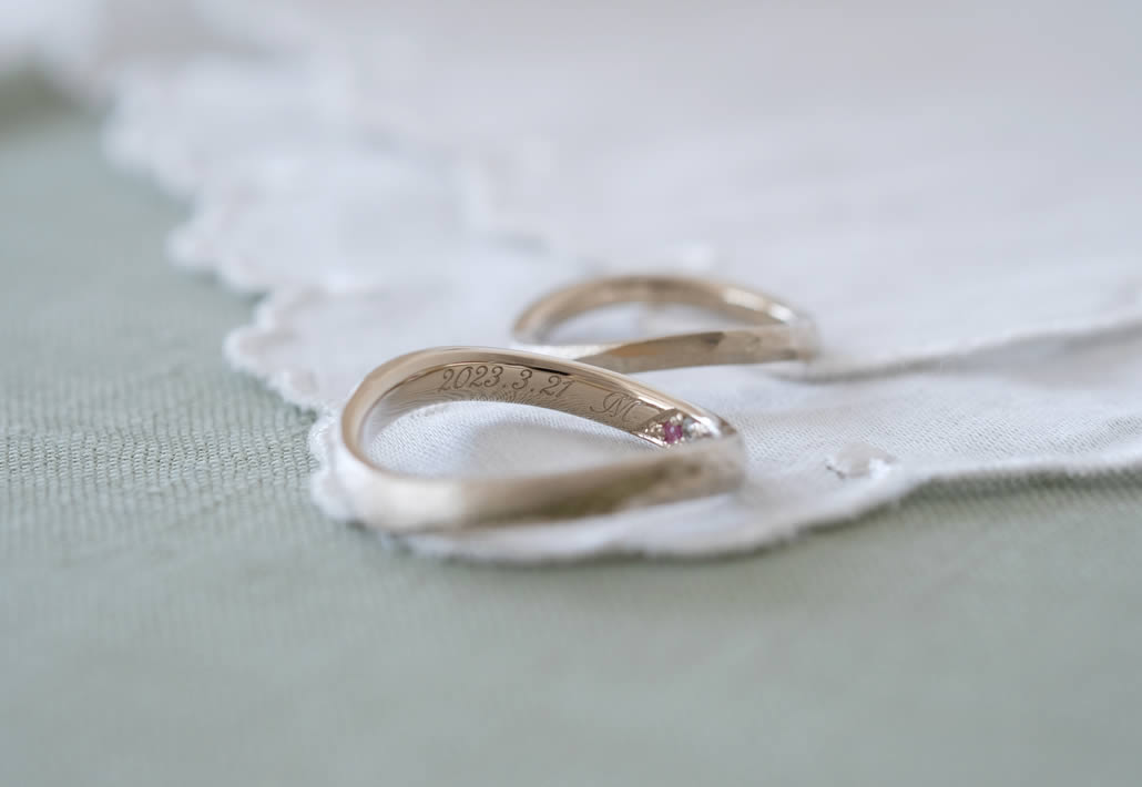 デザイン決め~指輪作りまで、おふたりとしっかりお打ち合わせや工程のご説明をさせていただきながら、こだわりが詰まったマリッジリングが完成いたしました。