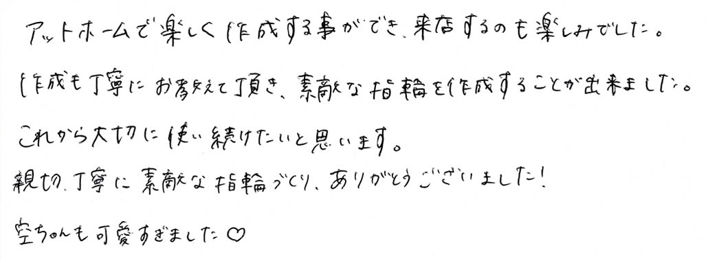 親切、丁寧に素敵な指輪づくり、ありがとうございました!