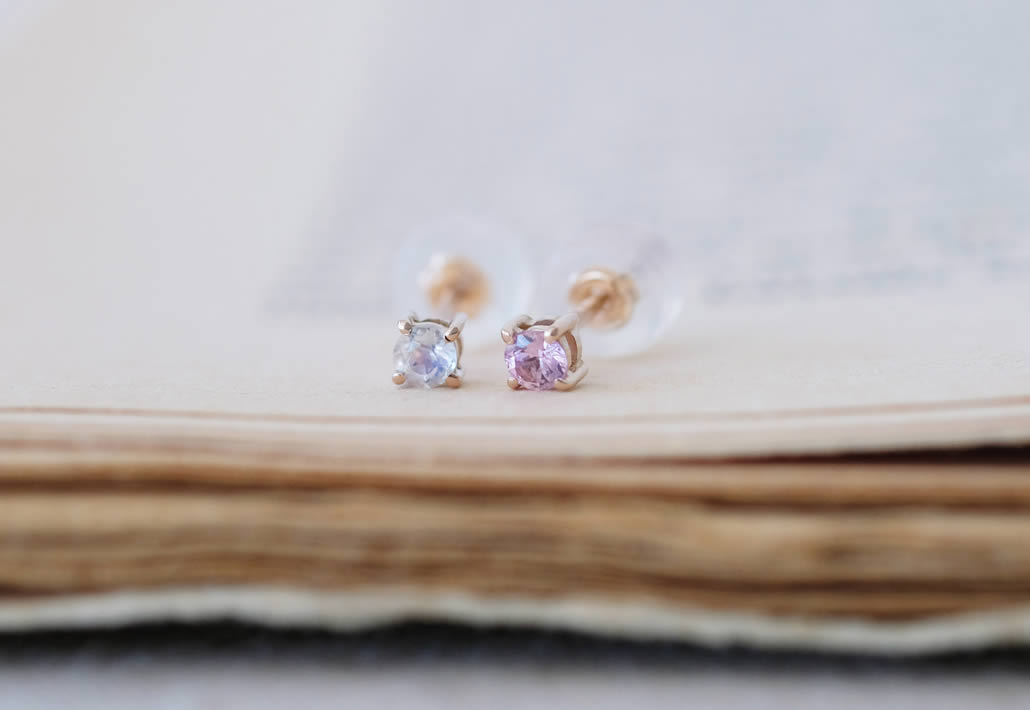 ご家族の誕生石であるムーンストーンとピンクサファイアを引き立てる4本爪は、