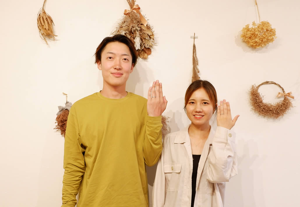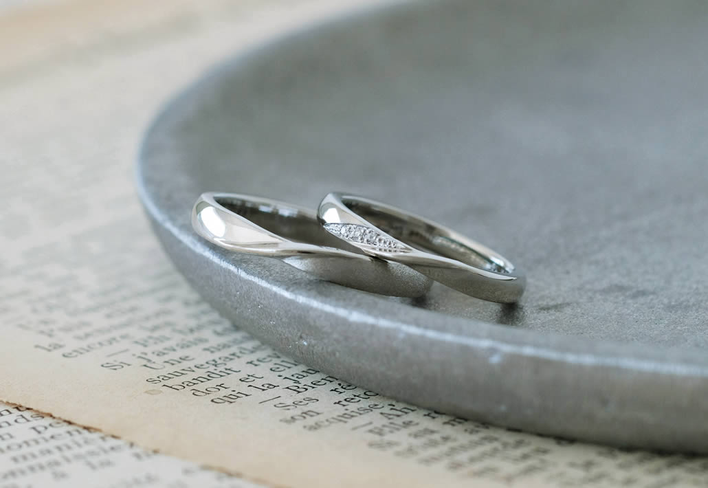 デザインはお揃いのねじり、素材はプラチナでお作りいたしました。