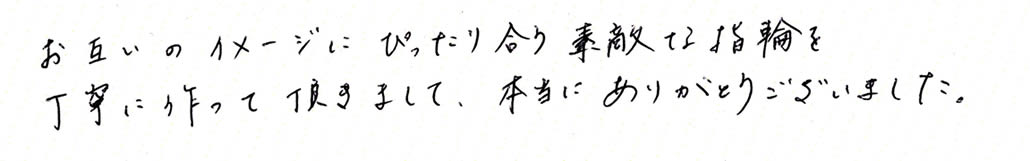 お互いのイメージにぴったり合う素敵な指輪を丁寧に作って頂きまして