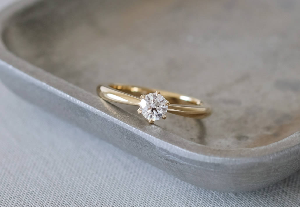 オーダーメイドでお作りしたイエローゴールドのソリティア婚約指輪です。