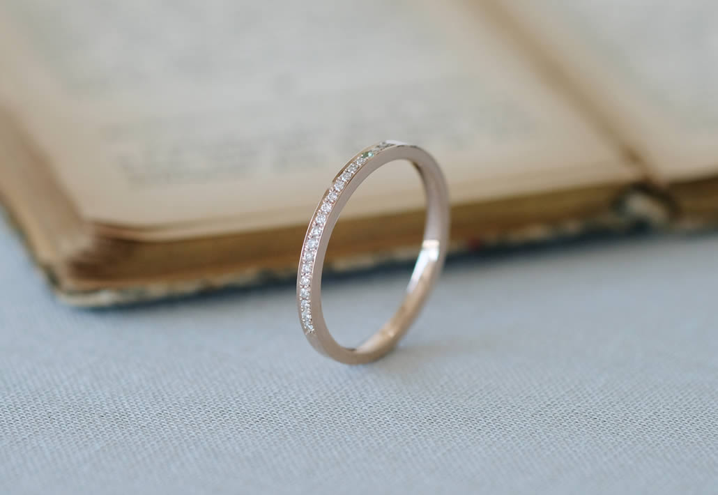 彼女がお持ちのイメージを生かしつつ、華奢なハーフエタニティをお作りさせていただきました。