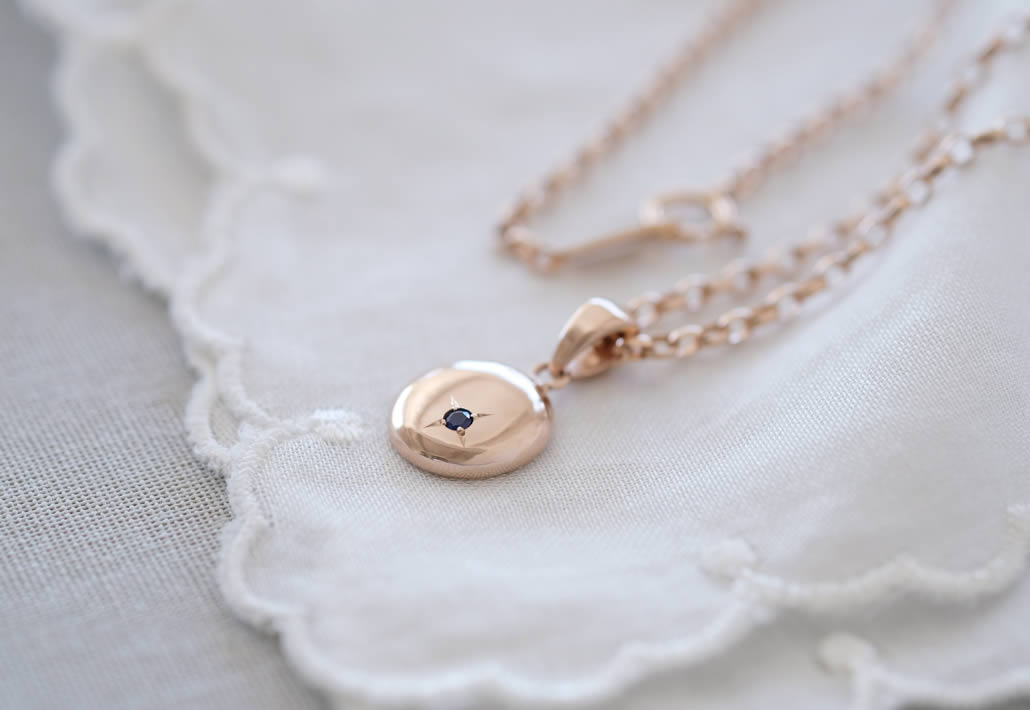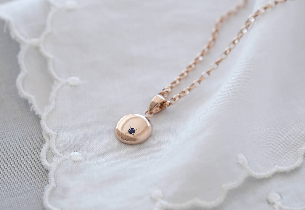 肌身離さず身に着けていたいとのことで、デザインはよりシンプルで耐久性のあるネックレスをご希望でした。また、愛猫と出会ったのが9月だった思い出にちなんで、9月誕生石のサファイヤを留めております。裏面には防水加工をしてフクリン留にて閉じた納骨ふたがあり、愛称を彫り入れました。